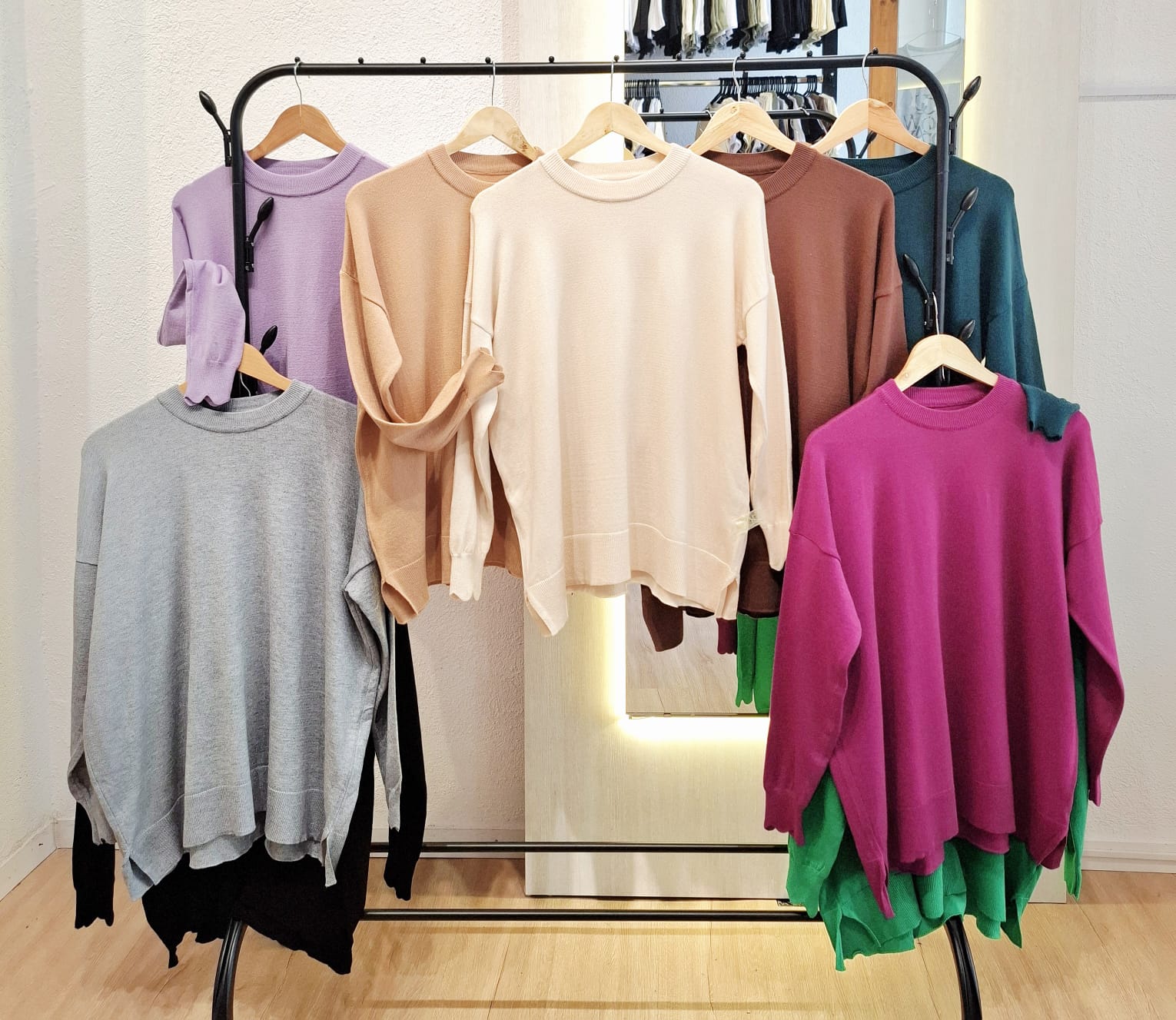 | Colores | Beige, Fucsia, Gris melange, Negro, Arena, Chocolate, Lila, Verde botella, Verde claro |